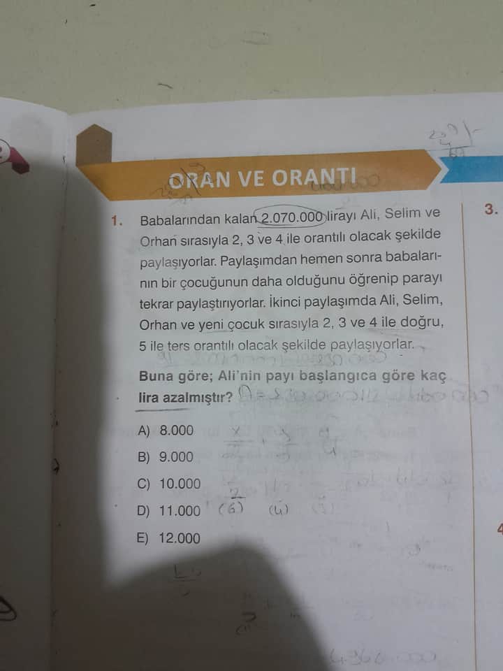 - Ali, Selim ve Orhan parayı 2, 3 ve 4 oranında bölüşüyorlar.