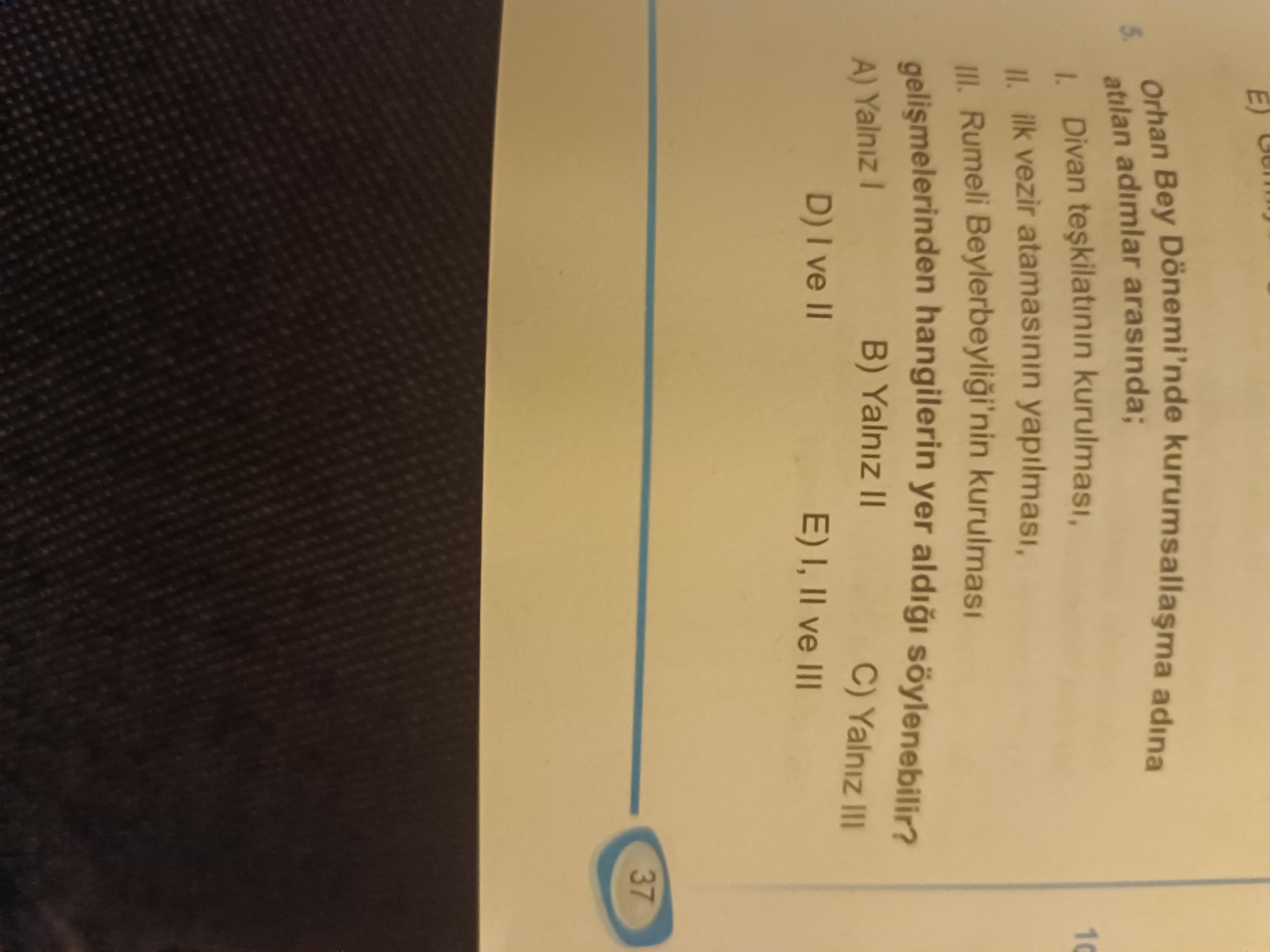 Gönderdiğin fotoğraf küçük ve yan dönük olduğu için sorudaki seçenekleri net okuyamıyorum. Fotoğrafı daha net ve dik (portre) şekilde, yakından ve iyi aydınlatılmış olarak tekrar yükleyebilir misin? Eğer istersen metni doğrudan yazıp da gönderebilirsin — o zaman hemen doğru cevabı ve gerekçesini adım adım açıklarım.