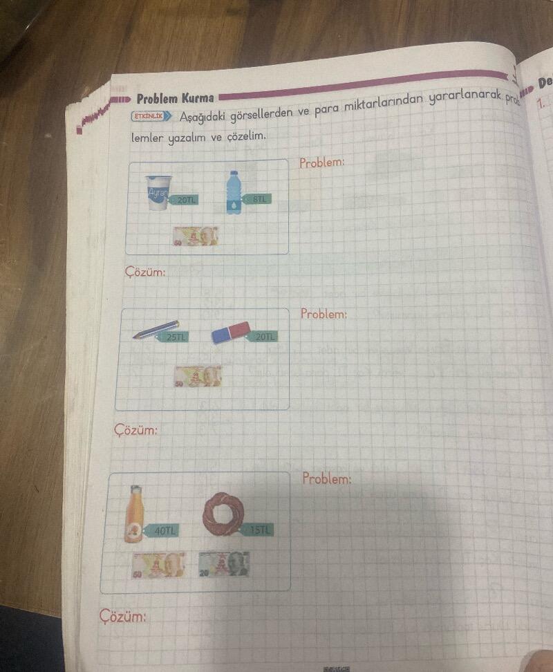 Adım 1 — Problem 1 (Yoğurt 20 TL, Su 8 TL, 50 TL ile ödeme)