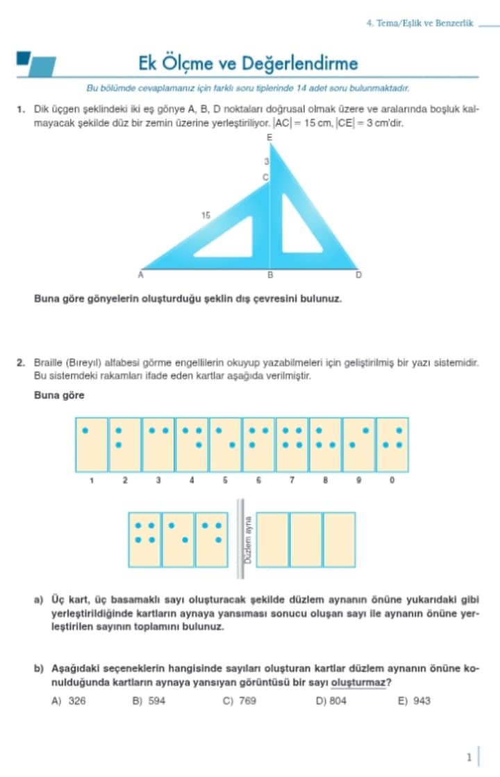 2) Braille (Bireyl) Alfabesi ve Ayna Yansıması Sorusu