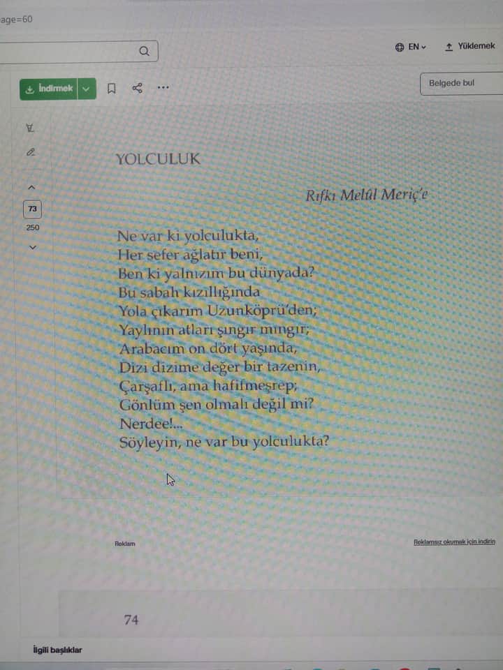 Aşağıda Rıfkı Melül Meriç’in “YOLCULUK” şiirine dair istenen unsurlar adım adım ele alınmıştır.