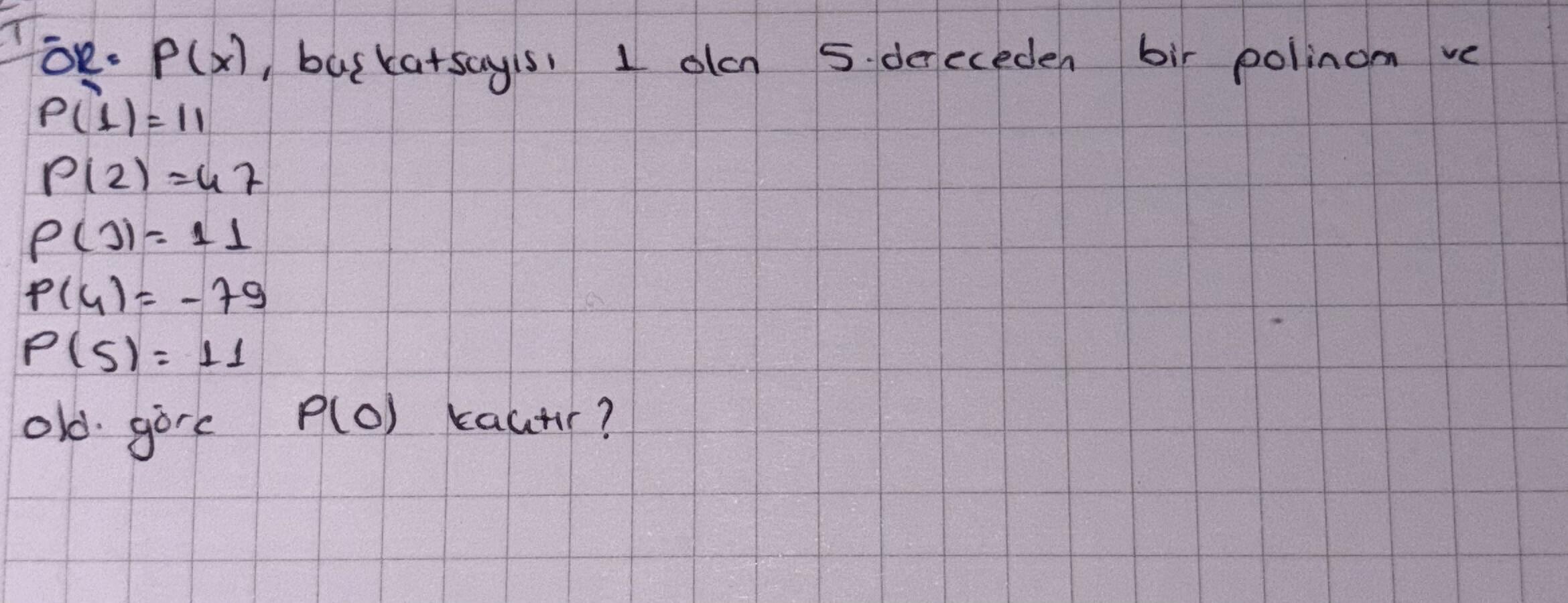 p(x), baş katsayısı 1 olan 5. dereceden bir polinom ve