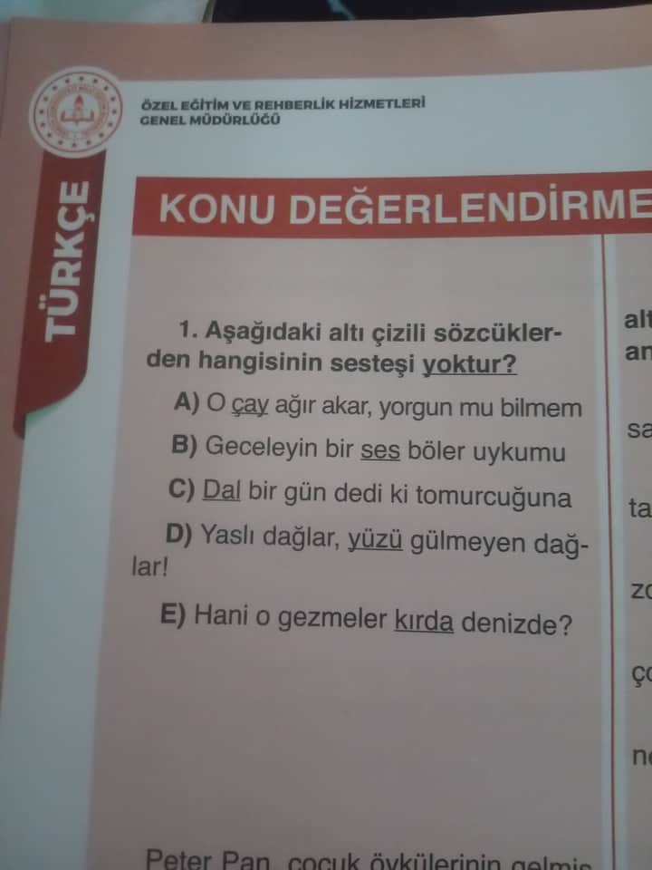 ## Soru: Aşağıdaki altı çizili sözcüklerden hangisinin sesteşi yoktur?