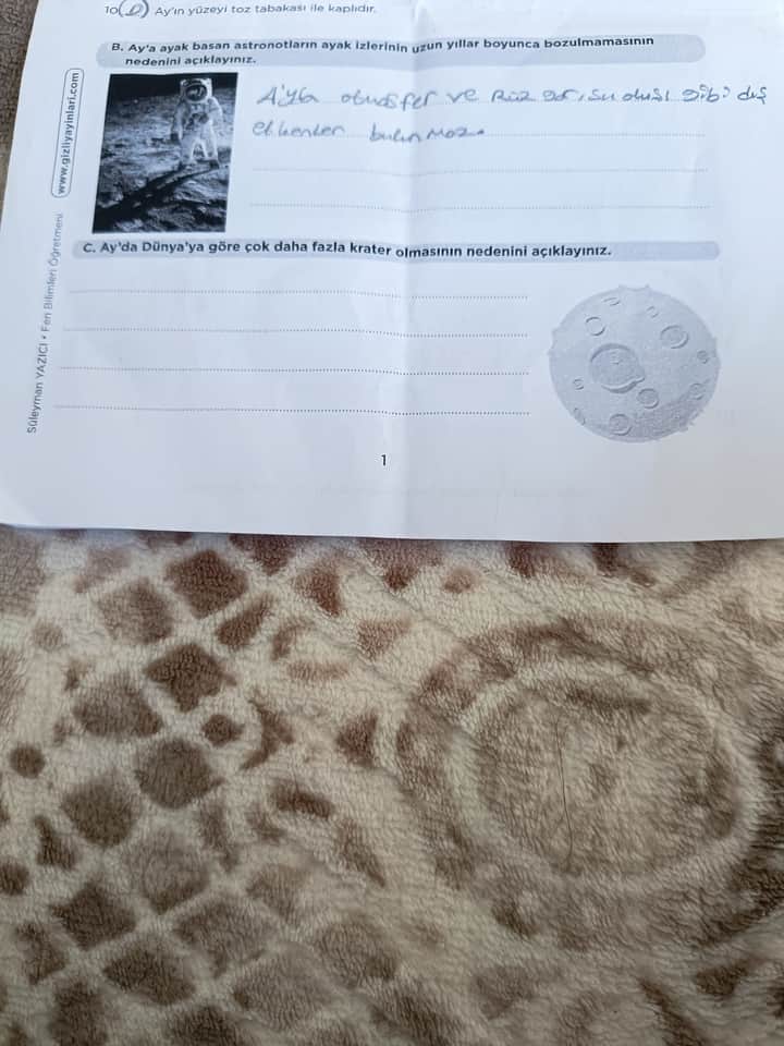 Ay’da Dünya’ya göre çok daha fazla krater olmasının nedenini açıklayınız.