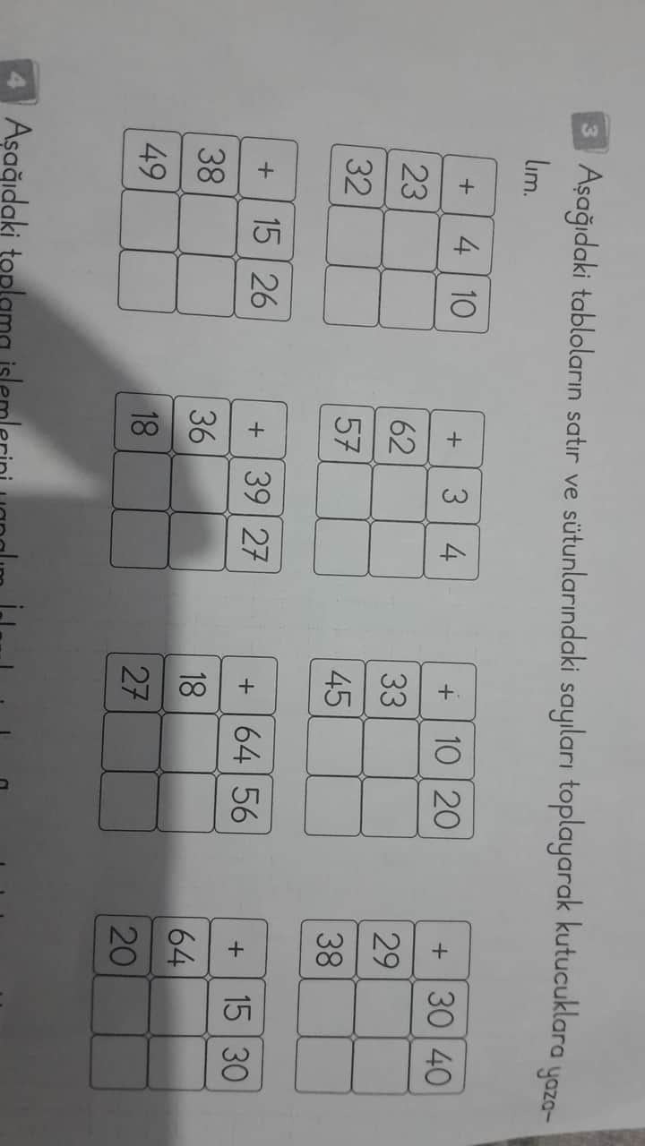 Dilerseniz her tablo için detaylı adım adım toplama işlemi ile ve sonuçları kutucuklara yerleştirerek geniş açıklamalı çözüm hazırlayabilirim. Yardımcı olayım mı?