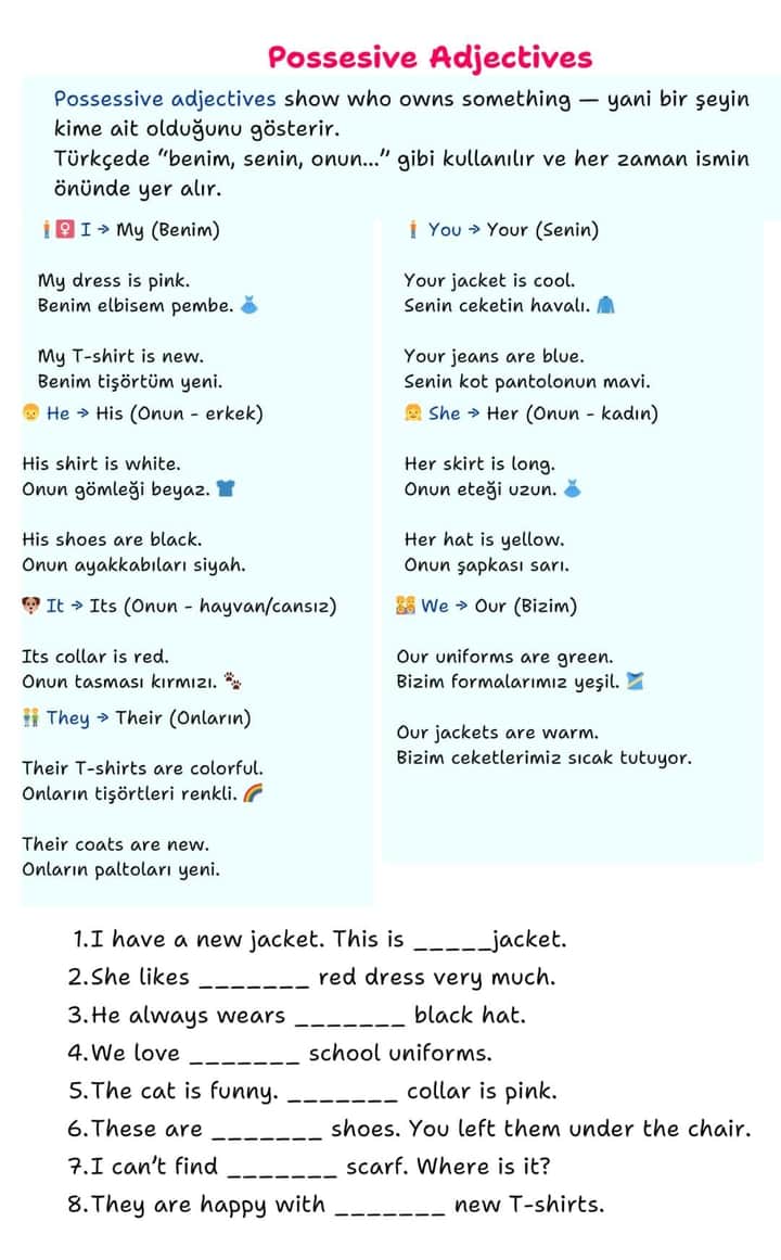 Possessive Adjectives: Boşlukları Doldurma Cevapları