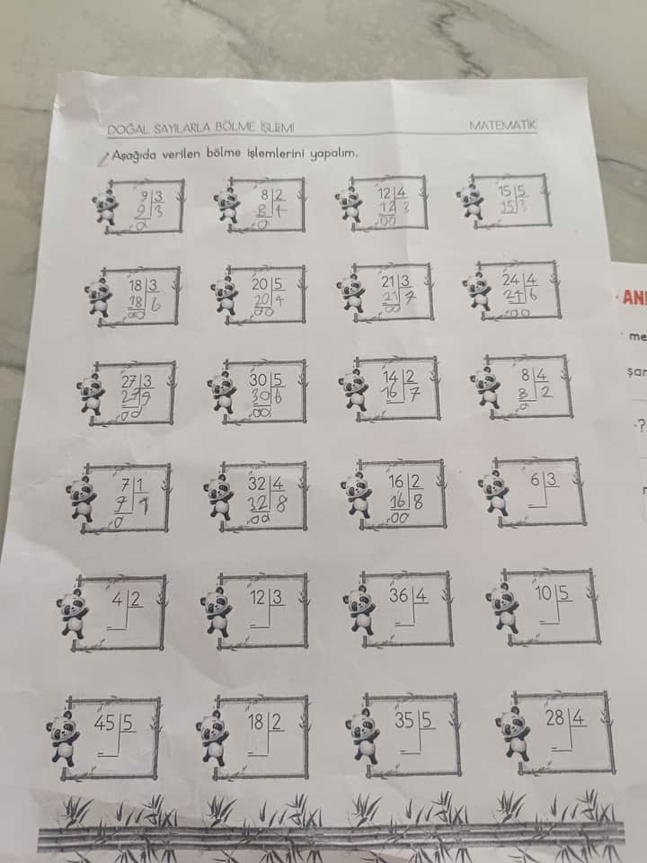 Tüm resimdeki bölme işlemlerinin çözümlerini adım adım göstererek mi istersiniz, yoksa sadece sonuç listesini mi hazırlayayım? @Nesrin_Karcioglu