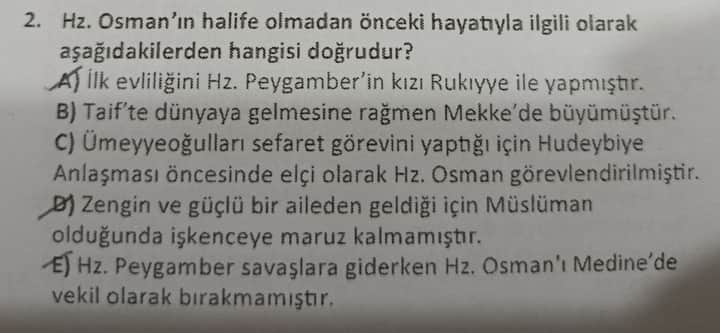 Soru: Hz. Osman’ın halife olmadan önceki hayatıyla ilgili aşağıdakilerden hangisi doğrudur?