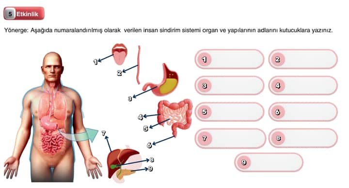 Görseldeki numaraların organ isimleri: