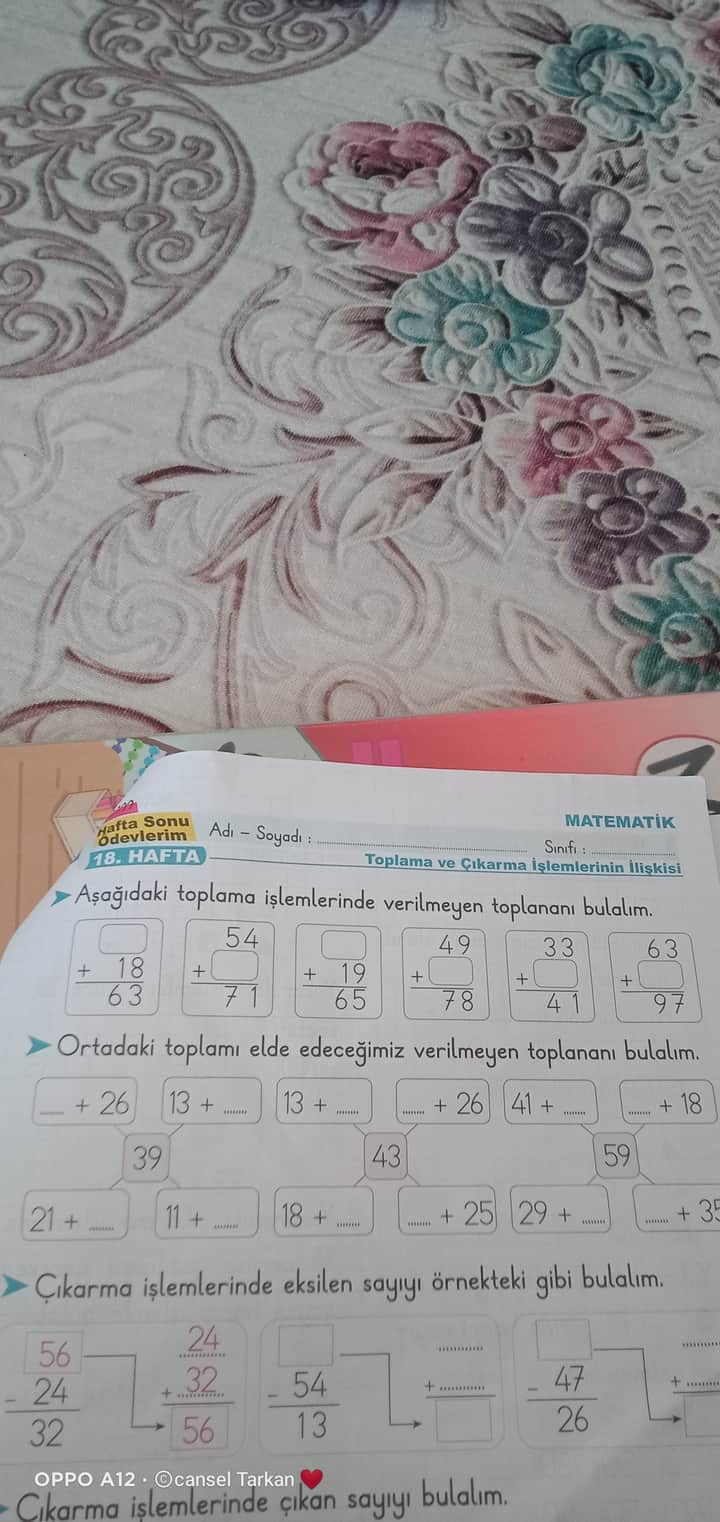 | 1. Toplamda Eksik Toplanan | 18 + x = 63 | x=45 |