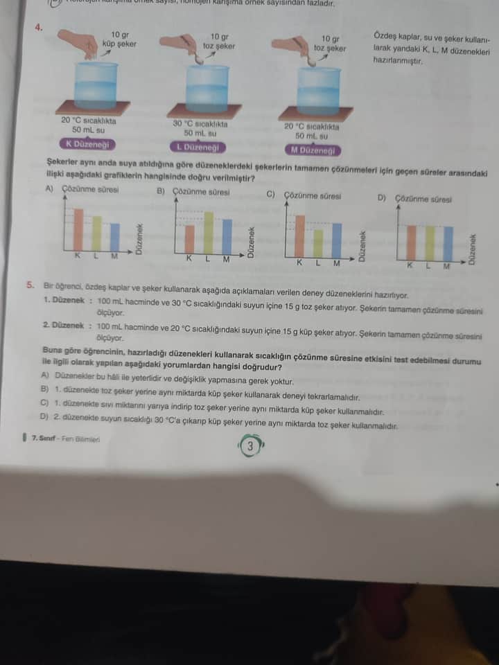 | 4 | K > M > L çözünme süresi | C |