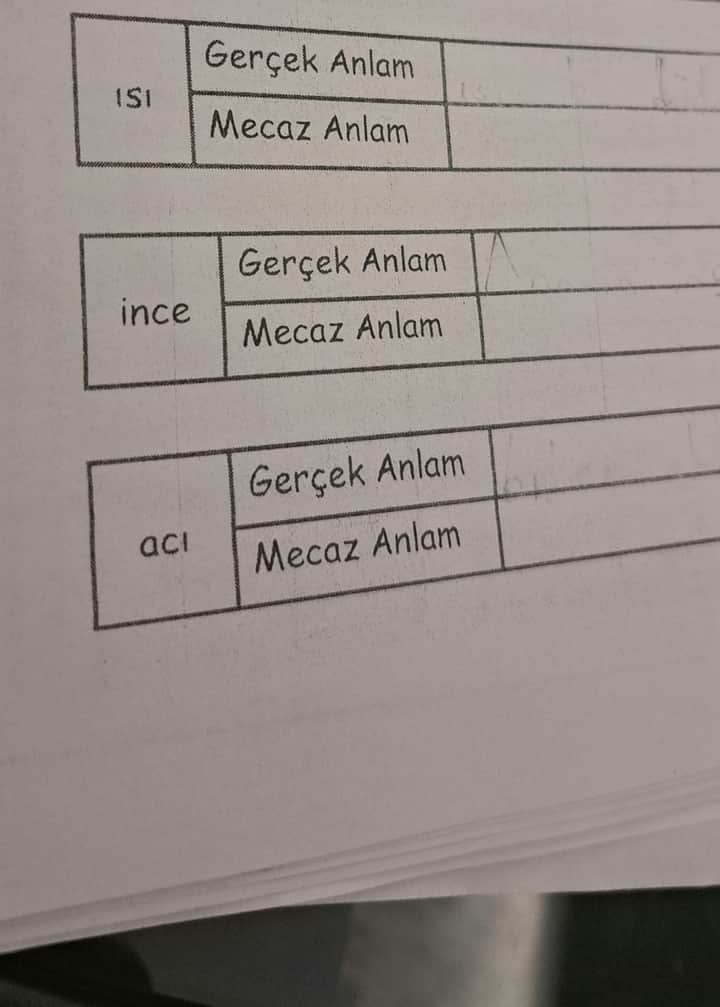 Soru: “Isı”, “ince” ve “acı” kelimelerinin gerçek ve mecaz anlamlarını yazınız.