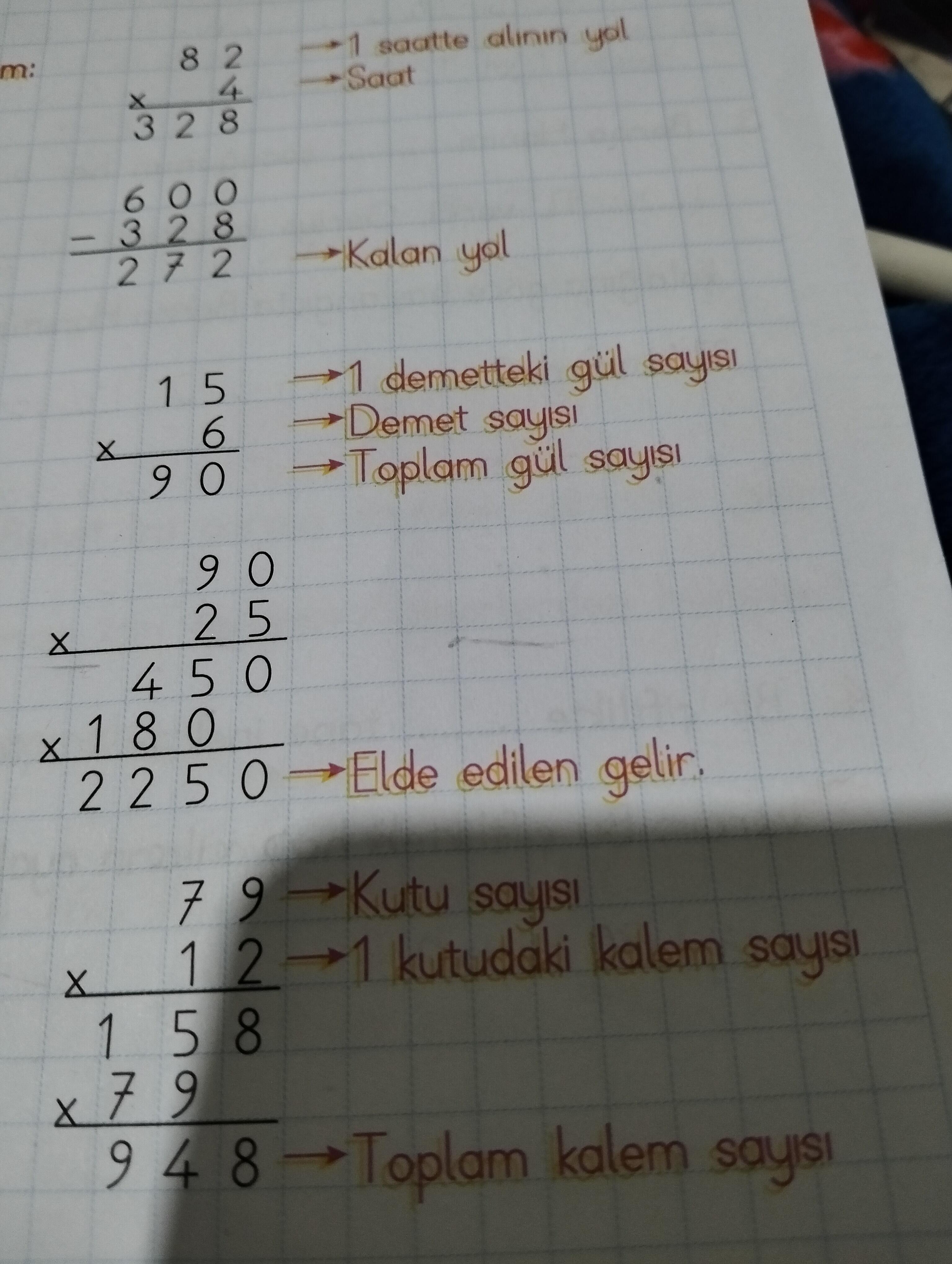 | 3 | 79 \times 12 | Okuldaki toplam kalem sayısı | 948 kalem |
