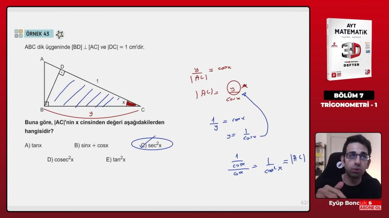 | AC | \sec^2 x | AD + DC toplamı, trigonometrik özdeşlik |
