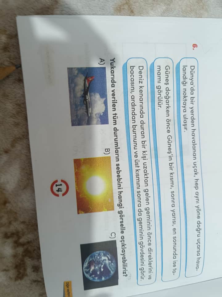 | Uçağın aynı yönde uçarak başlangıca dönmesi | Yer küresinin eğriliği | C |