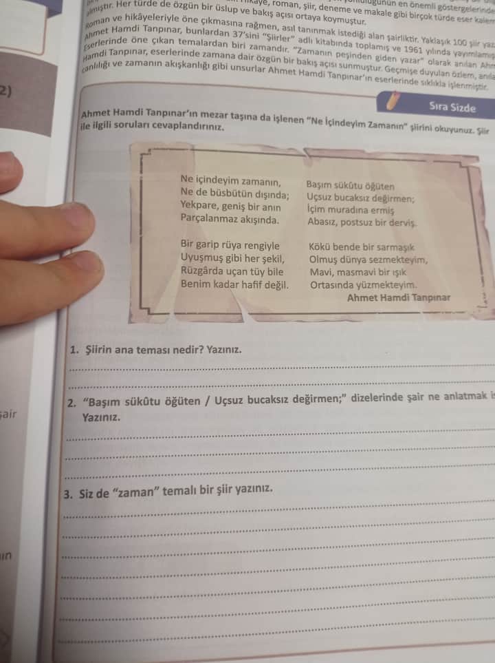 3. Siz de “zaman” temalı bir şiir yazınız.