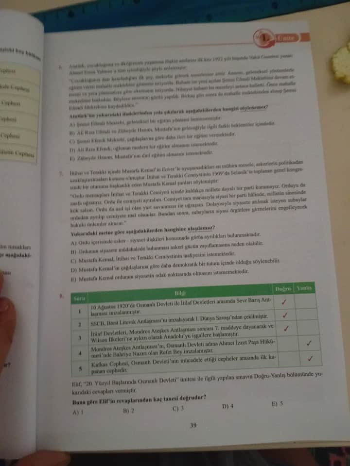 | 3 | 7. maddeye dayanarak Anadolu işgalleri başladı. | Doğru | Y | Yanlış işaretlenmiş |