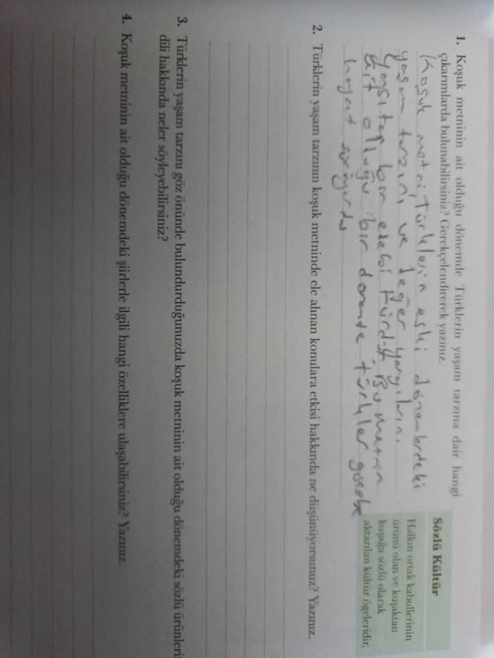 - Türklerin yaşam tarzının koşuk metninde ele alınan konulara etkisi hakkında ne düşünüyorsunuz? Yazınız.