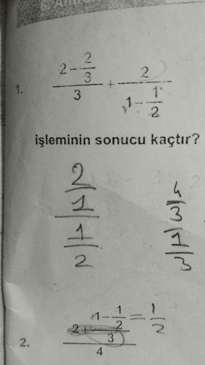 | İkinci kesir | \frac{2}{\frac{1}{2}} | 4 |