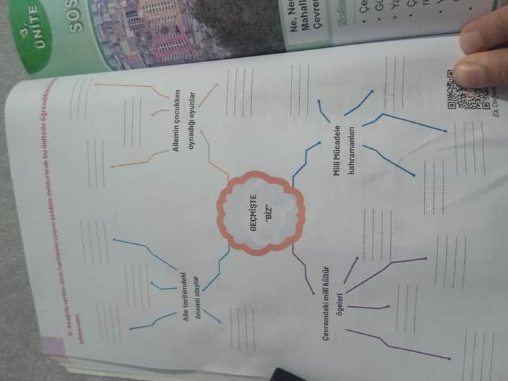 Her başlığın yanındaki boş satırlara dilediğiniz kadar örnek ekleyebilir, hatta tarihi tarih ve mekân bilgisi de yazabilirsiniz. Böylece hem kendi ailenizin geçmişine dair ayrıntıları ortaya koymuş, hem de “GEÇMİŞTE BİZ” konusunu zengin bir zihin haritasıyla tamamlamış olursunuz. @Recinem