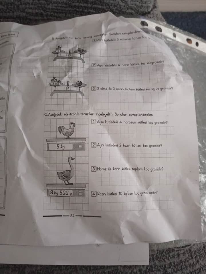 Cevap: 3 elma ile 3 narın toplam kütlesi 4 kg 200 gram.
