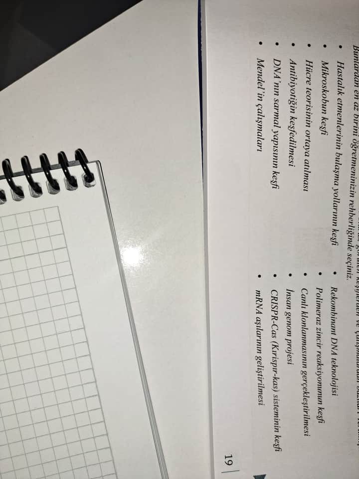 - Kesinlikle seçilecekler: DNA’nın yapısının keşfi; Mendel’in çalışmaları (genetik temeli); PCR; İnsan Genom Projesi; CRISPR-Cas; polimeraz/enzim temelli teknikler; (örnek olarak verilen listede) mRNA aşı teknolojisi ve klonlama çalışmaları da modern biyoteknolojinin uygulamalarıdır.