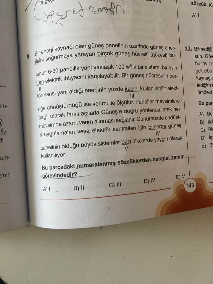 - III. kaçını → “Kaç” soru zamiridir; “aldığı enerjinin yüzde kaçını…” ifadesinde nesnenin yerine geçen soru anlamlı bir adıldır.