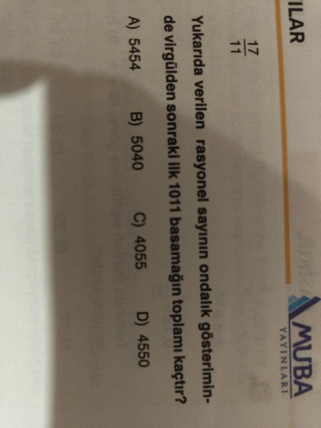 Yukarıda verilen rasyonel sayının ondalık gösteriminde virgülden sonraki ilk 1011 basamağın toplamı kaçtır?