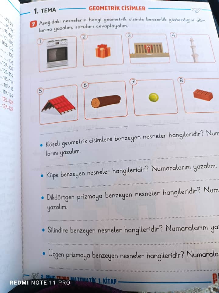 Aşağıdaki nesnelerin hangi geometrik cisimle benzerlik gösterdiğini yazalım: