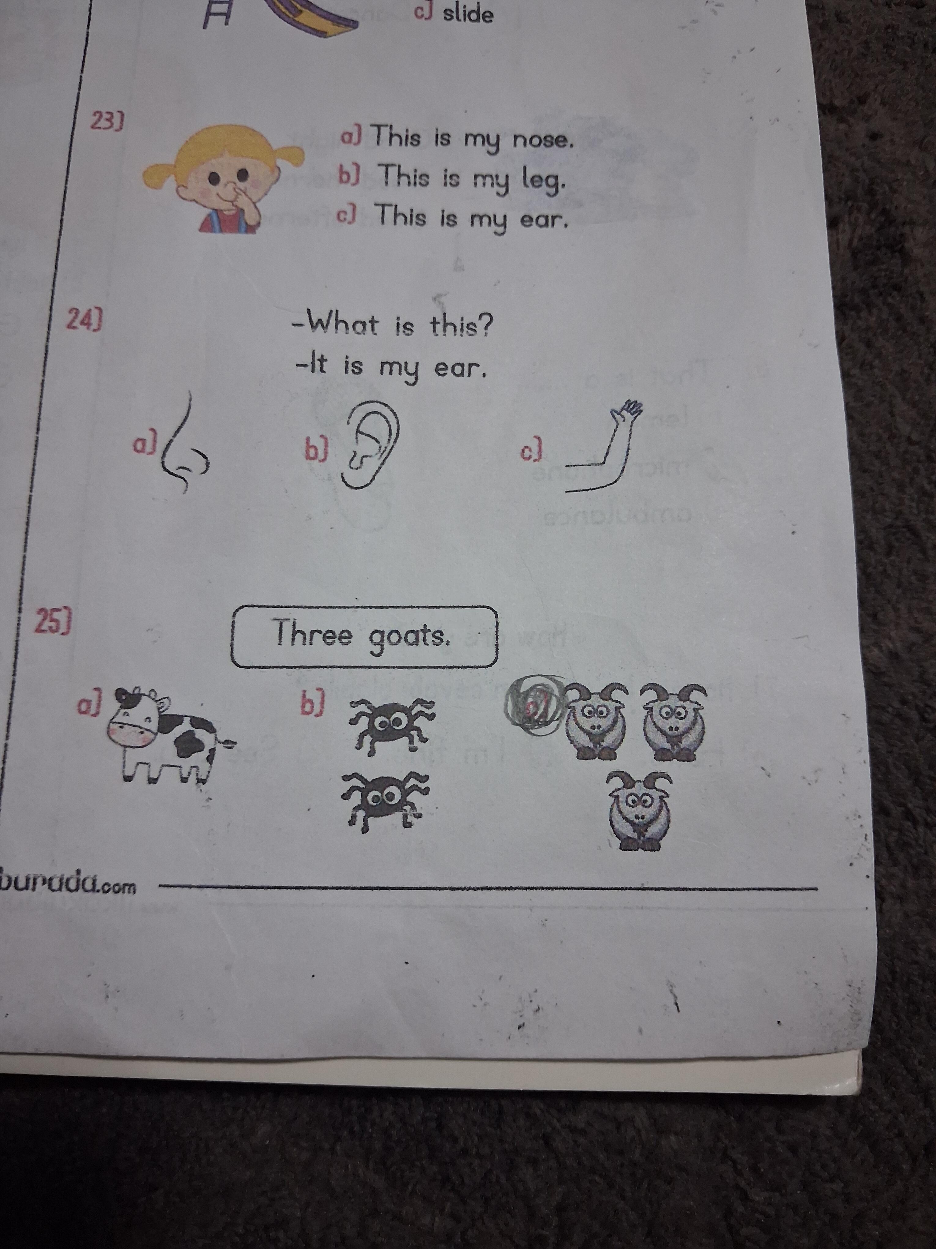 - 19 numaralı soru: “This is my ear.” doğru cevaptır.