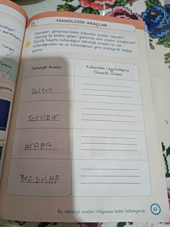 Çocuklar için kullanılan bir kitapta yer alan “Teknolojik Araçlar” etkinliği hakkında değerlendirme ve bilgi verebilirim.