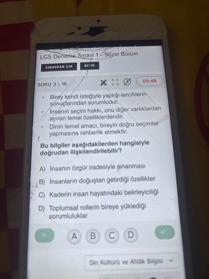 LGS Din Kültürü ve Ahlak Bilgisi testlerinde “insan” kavramı, özgür irade ve sorumluluk ekseni etrafında sıkça ele alınır. Bu soruda da kişinin kendi tercihleri ve bu tercihlerin sorumluluğu vurgulanıyor. Doğru cevabı bulmak için önce sorudaki anahtar kavramları tespit edelim.