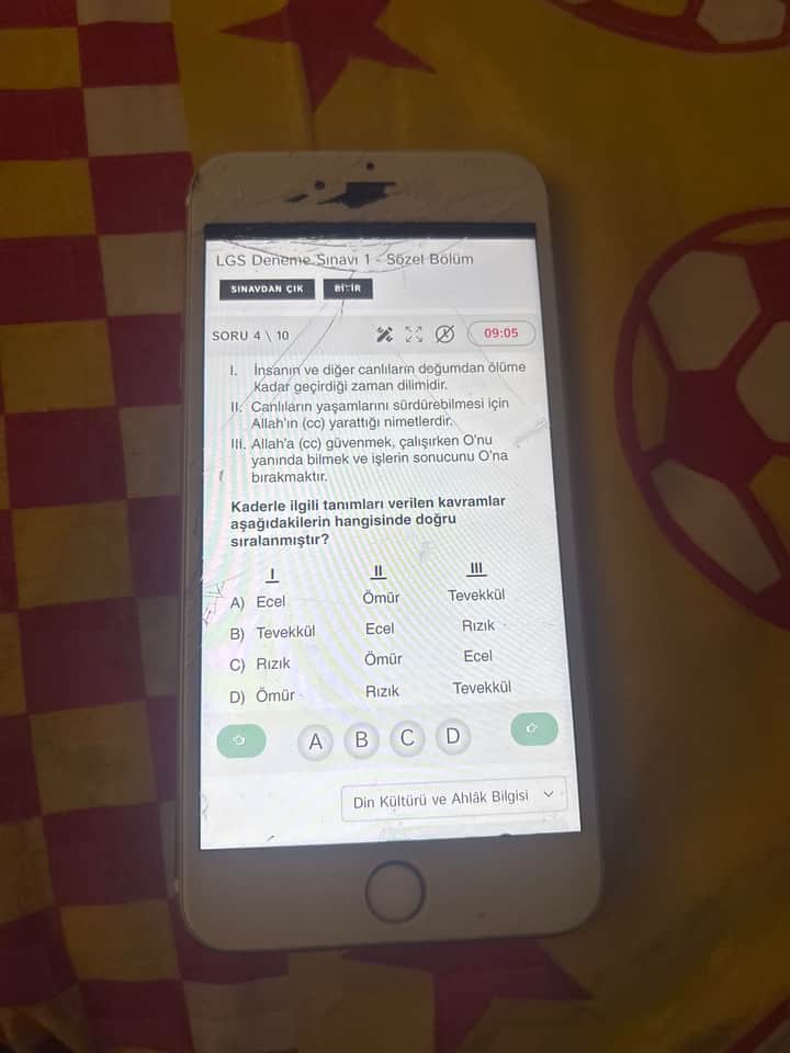 | Şık | I (Doğumdan ölüme kadar geçen zaman) | II (Yaşam için verilen nimetler) | III (Allah’a güvenmek, tevekkül) |