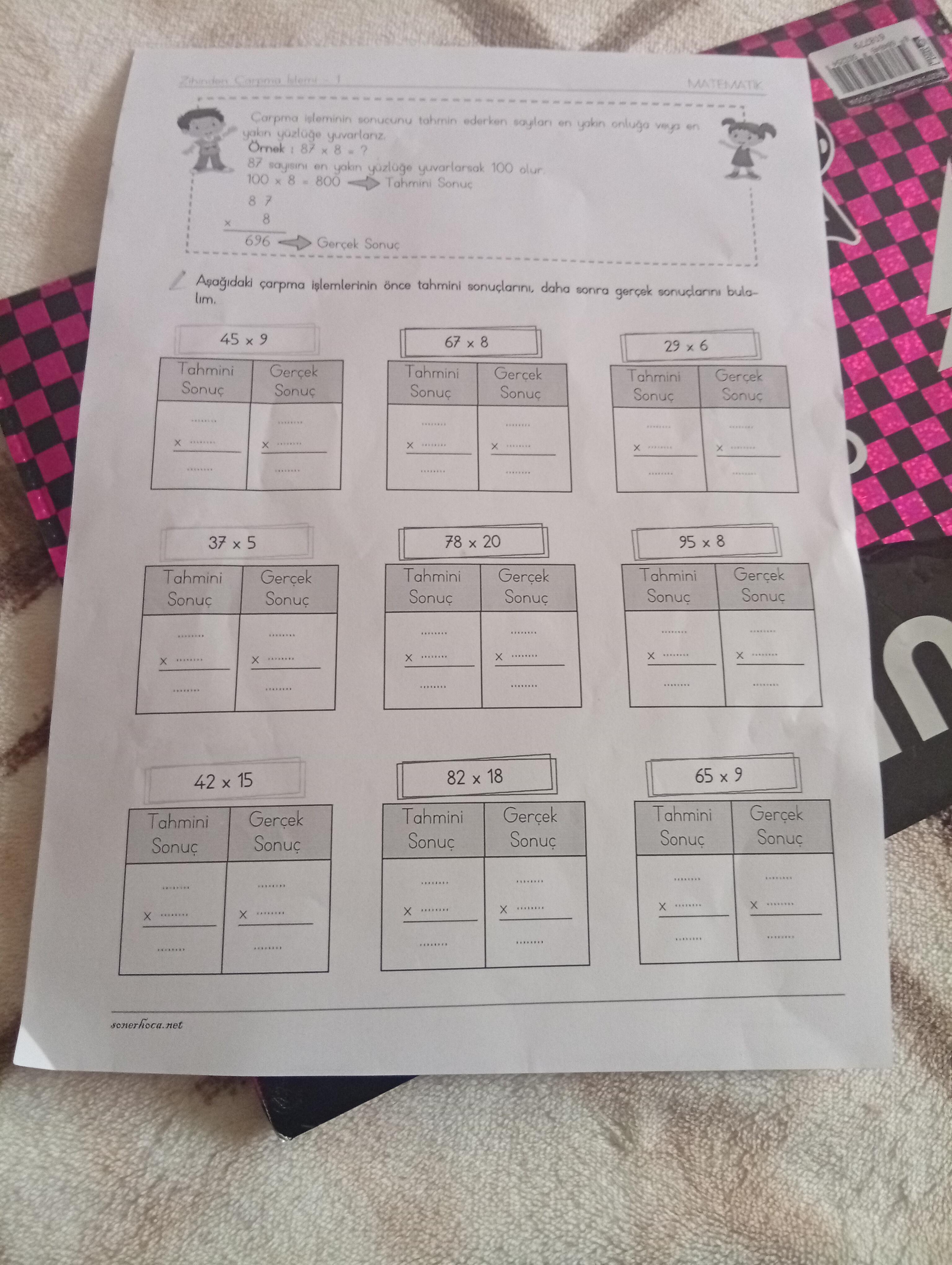 Soru: Görselde verilen çarpma işlemlerini yaparak sonuçlarını bulunuz ve verilen tablolara yazınız.