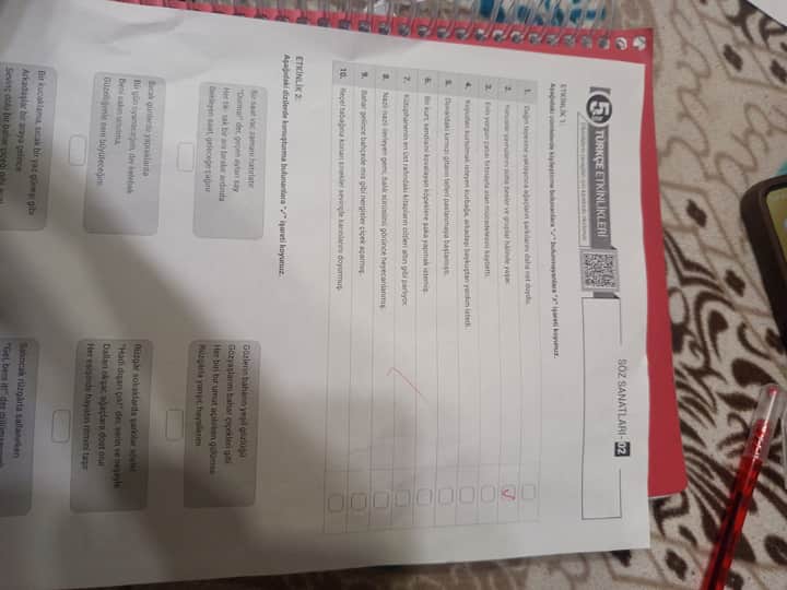 Sonuç: 1’den 10’a kadar tüm cümlelerde işaretleme yapılmalıdır.