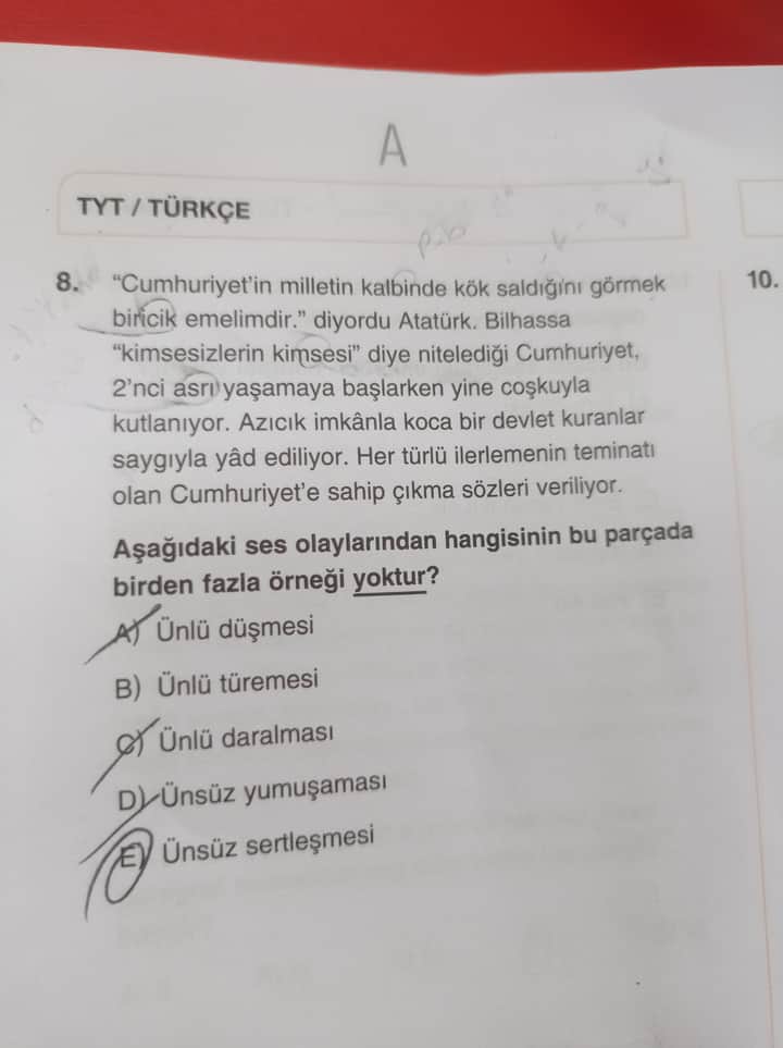 Soru: “Aşağıdaki ses olaylarından hangisinin bu parçada birden fazla örneği yoktur?”