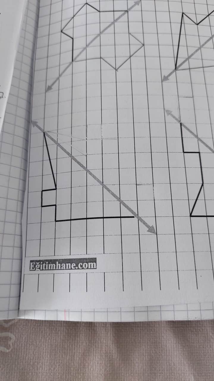 - Defterde veya kareli kağıtta elinizdeki diyagonal çizgiyi (köşegen) mutlaka belirgin şekilde işaretleyin. Bu çizginin, şeklin yansımasının alınacağı yansıma doğrusu (simetri ekseni) olduğunu unutmayın.
