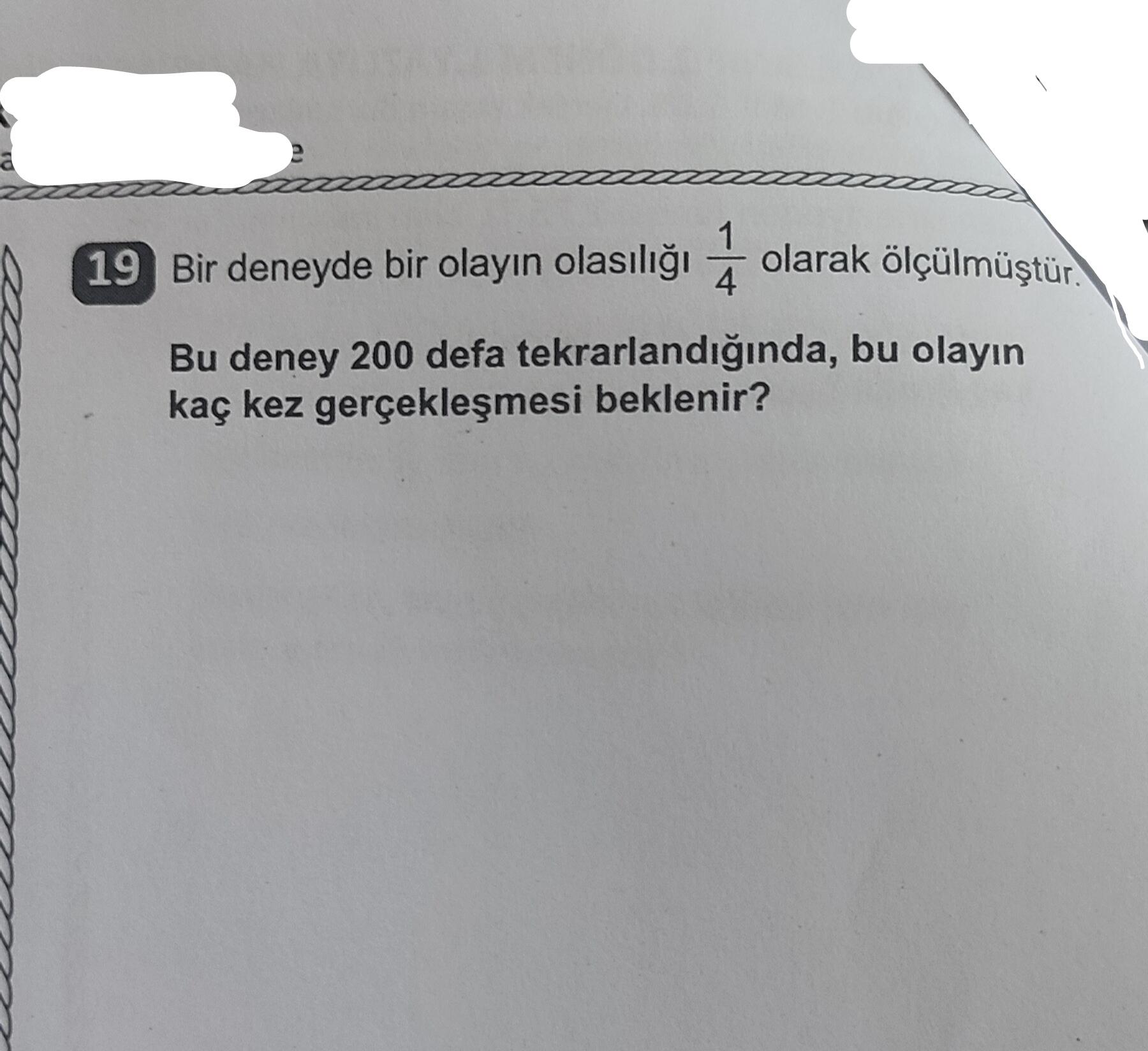 CEVAP: Bu olayın 200 denemede beklenen gerçekleşme sayısı 50 kezdir.