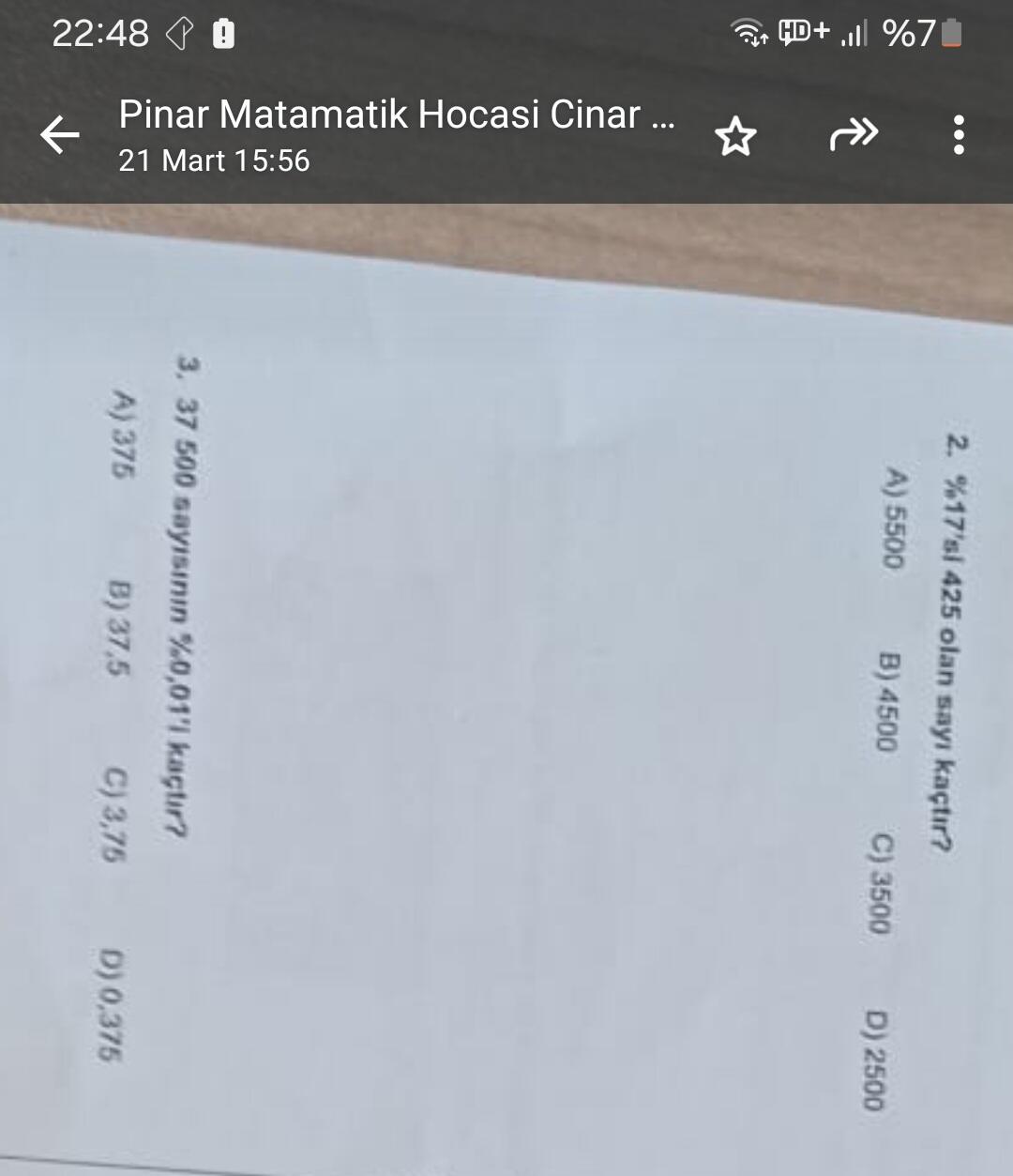 2) %17’si 425 olan sayı kaçtır?
