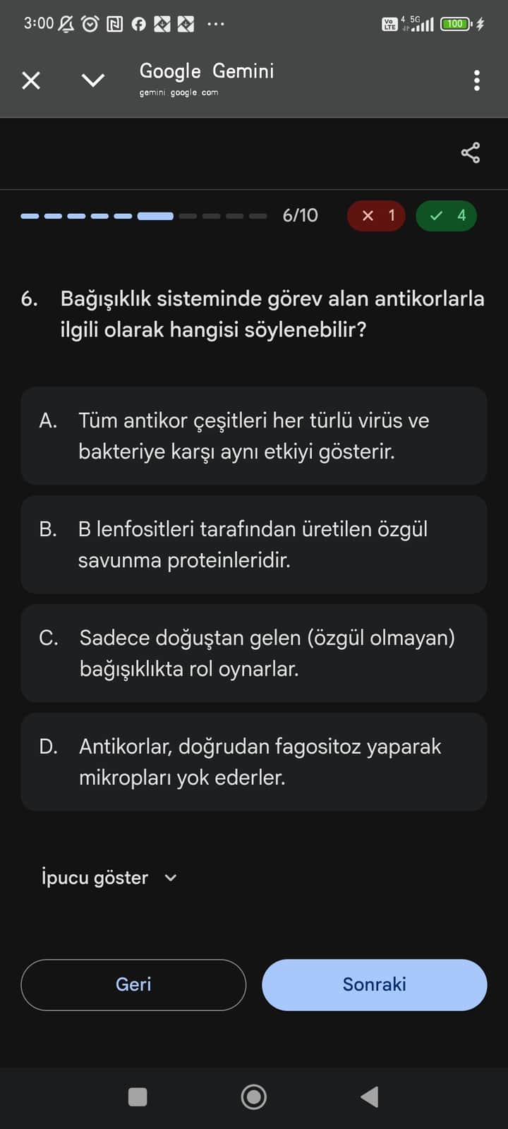 Bu bilgileri pekiştirmek için 3 adet antikor yapısı ve fonksiyonu üzerine pratik soru ister misiniz?