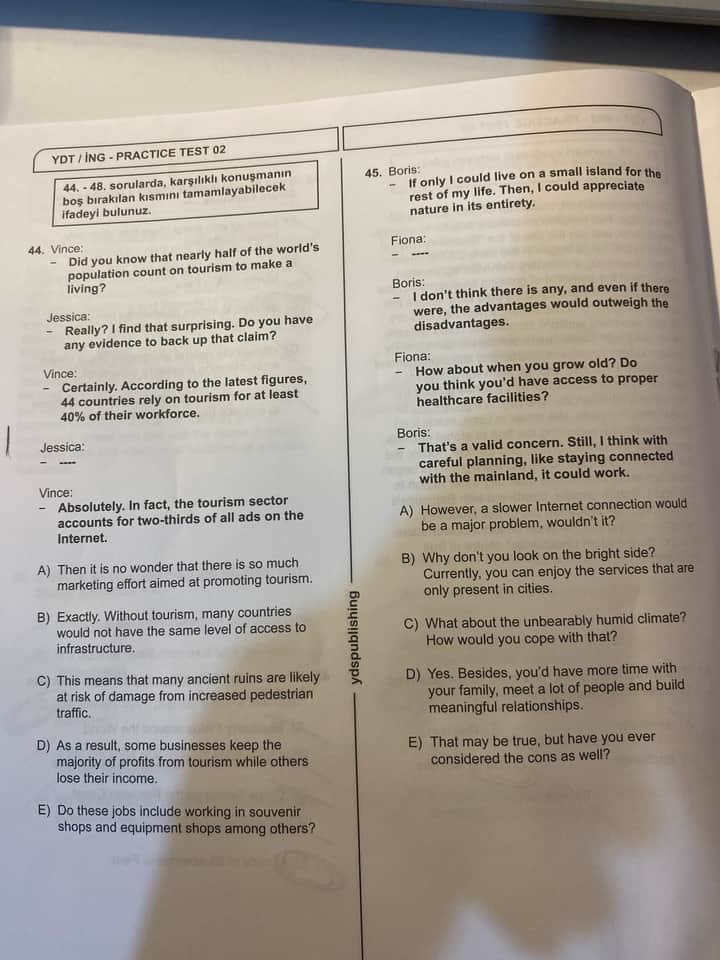 45. Boris ve Fiona arasındaki diyalogdaki boşluğu tamamlayabilir misin?