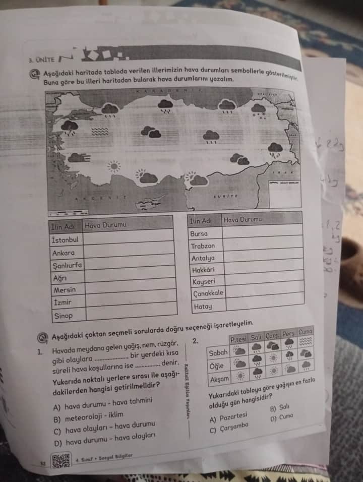 Doğru seçenek: C) hava olayları – hava durumu