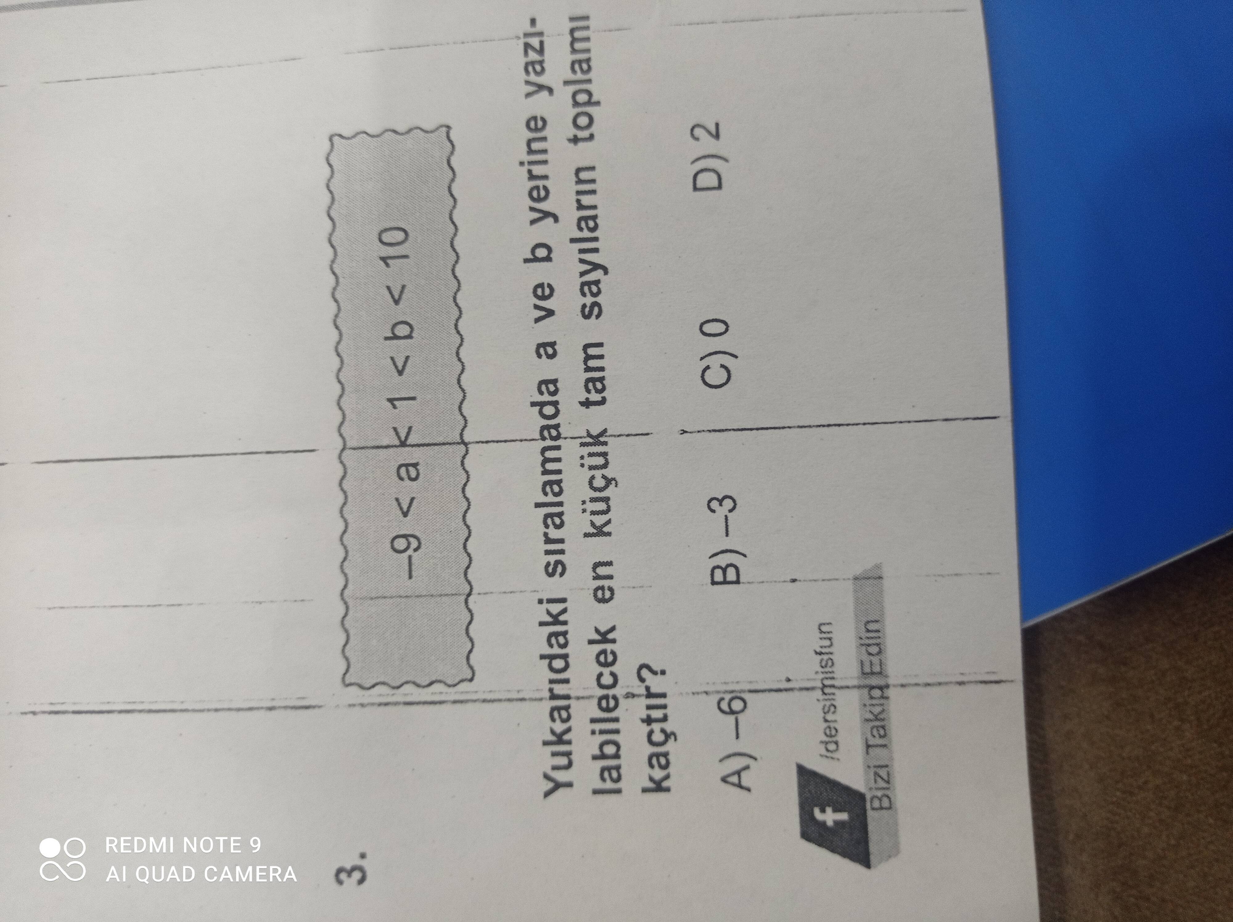- -9 < a < 1 olduğuna göre, a için uygun en küçük tam sayı -8 olacaktır.