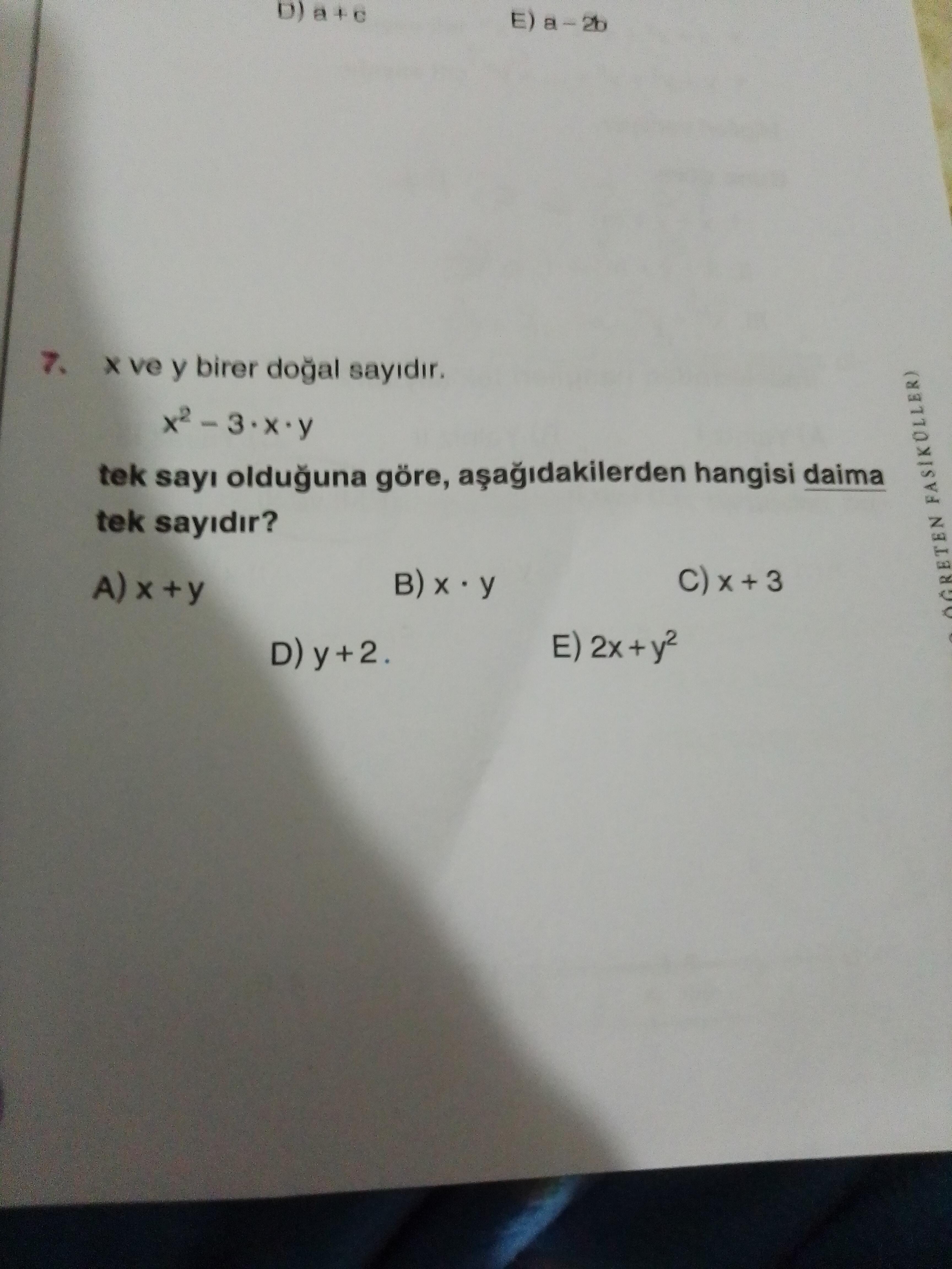 | E) | (2x + y + 1) | (2x) çift, (y) tek, (1) tek → çift + tek + tek = çift | Hayır |