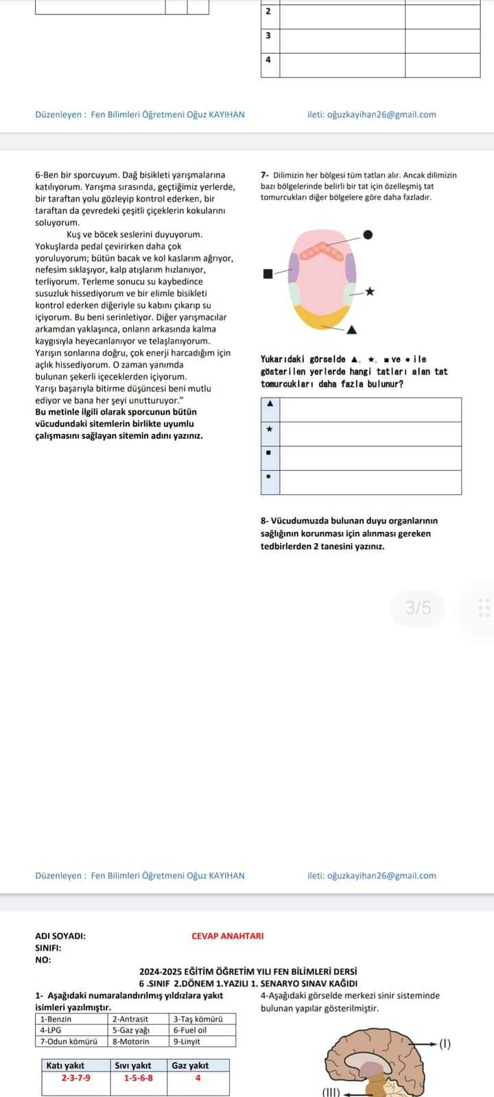 Paylaştığınız görselde, birden fazla soru ve çeşitli bilgiler bulunmaktadır. Özellikle 6. sınıf Fen Bilimleri dersiyle bağlantılı konular yer almaktadır. Sorular ağırlıklı olarak şunları kapsıyor:
