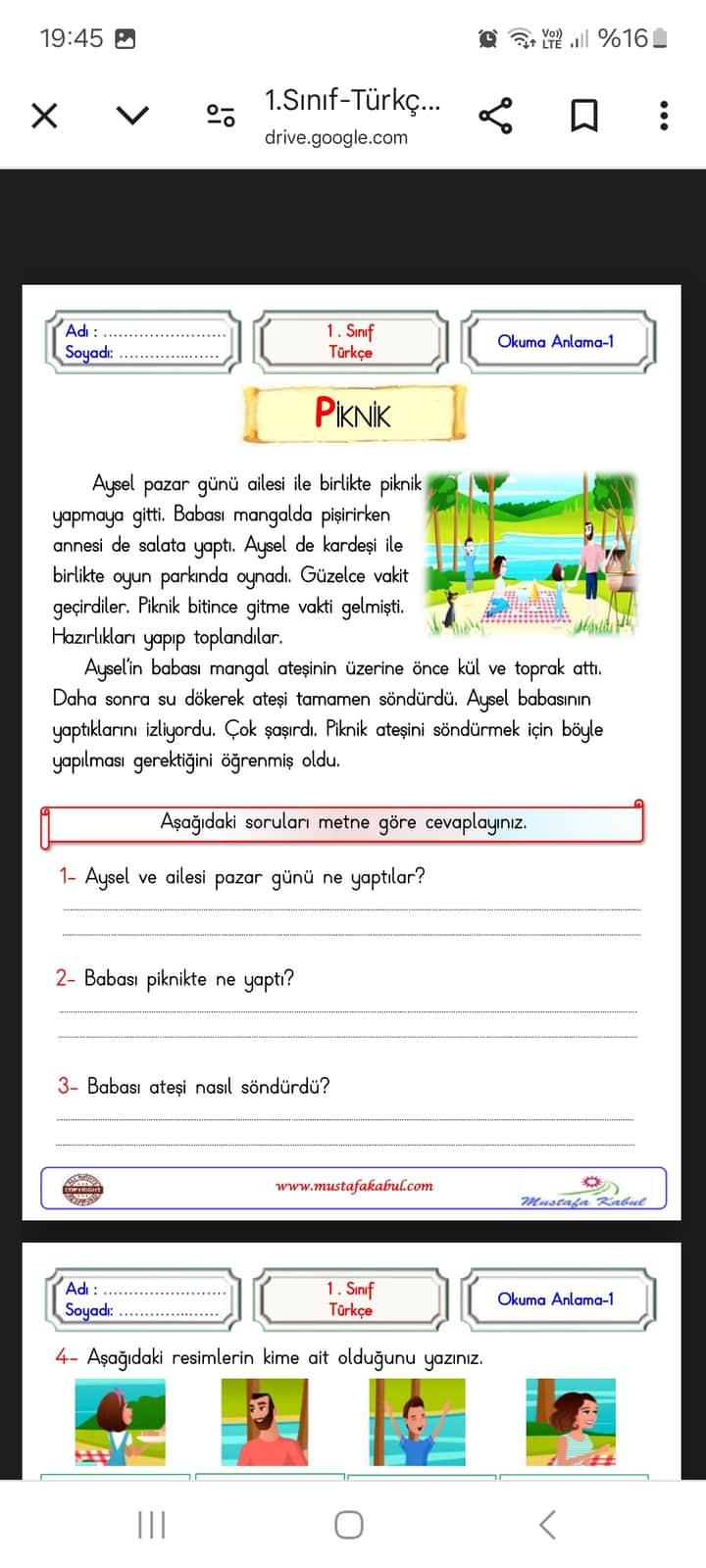| 4. Resimlerin kişilere aitliği | 1. Aysel’in annesi, 2. Babası, 3. Kardeşi, 4. Aysel |