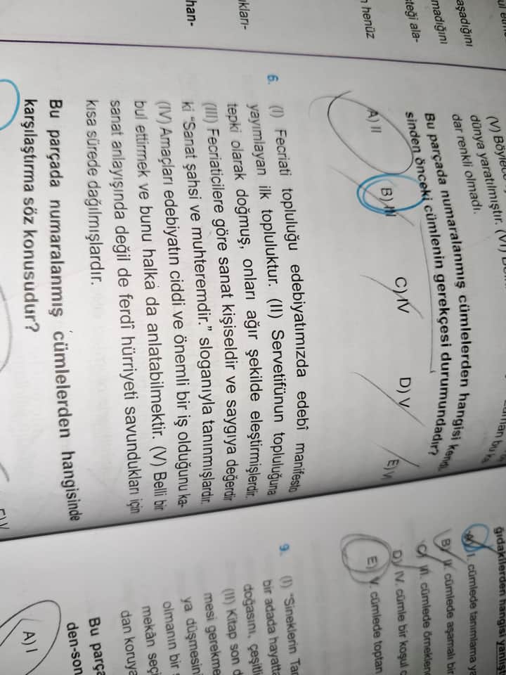 Parçada numaralanmış cümleler şunlardır: