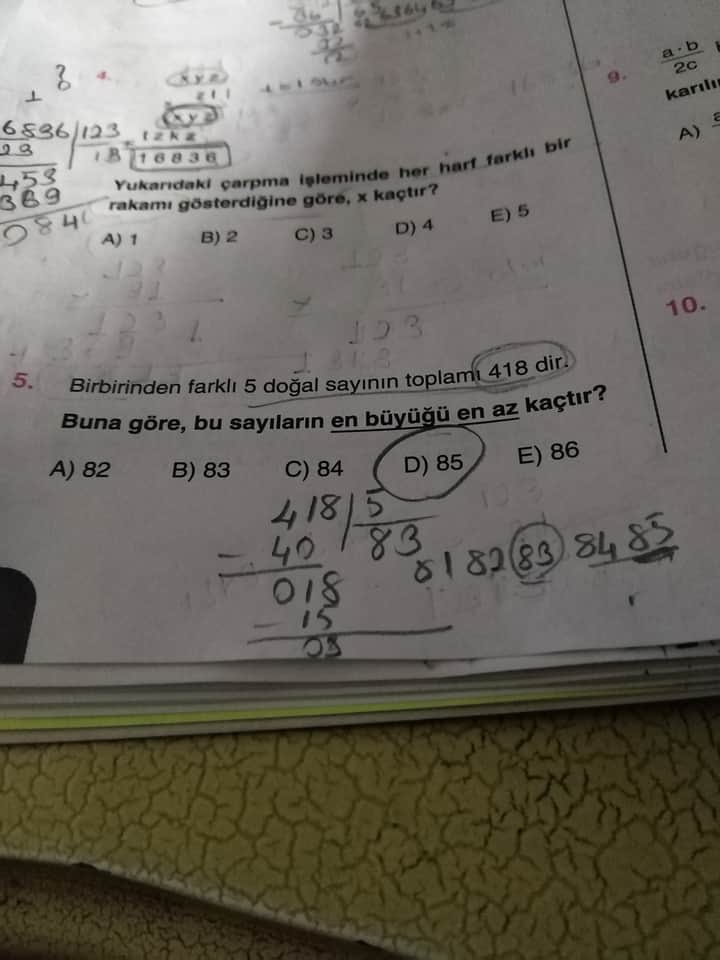 Beş doğal sayının toplamı 418 olduğuna göre: